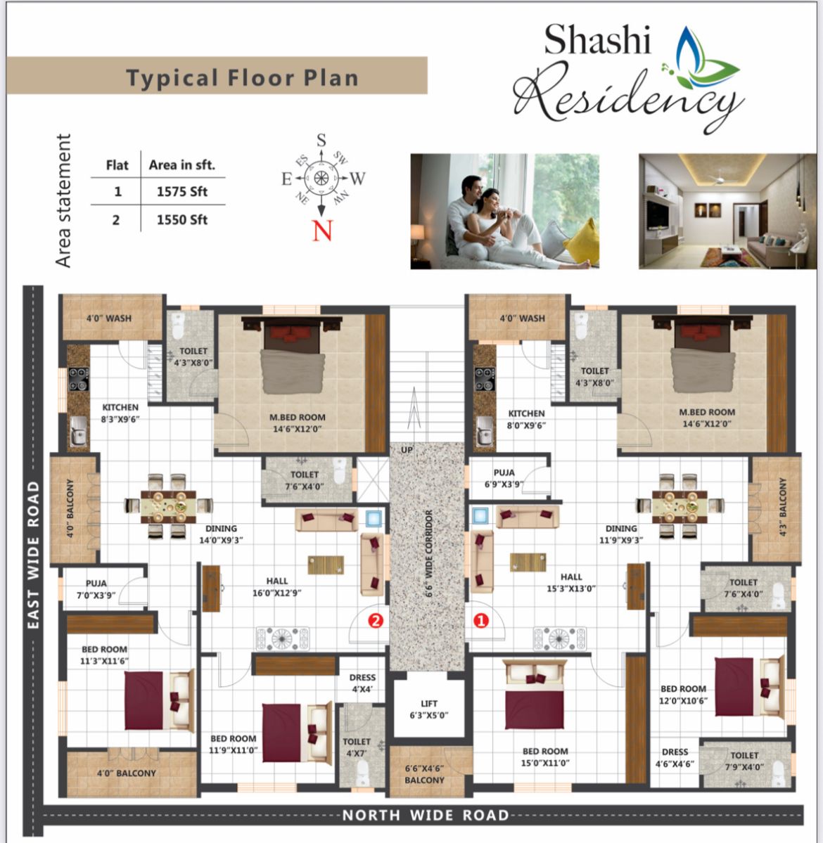 East Facing Flat: 1575 sft